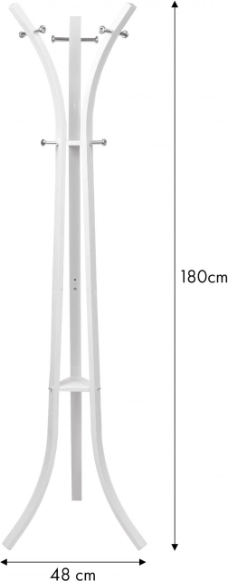 Dzięki sprytnie zaprojektowanym ramionom zyskujesz 12 haczyków do przejrzystego przechowywania okryć, torebek, czapek i parasoli. Potrójna podstawa zapewnia znakomitą stabilność, a smukła forma oszczędza miejsce w mniejszych holach i biurach.