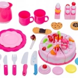 W komplecie znajduje się także mini zestaw kawowy z kubeczkami, talerzykami i deserami, świecąca świeczka dla uroczystej atmosfery oraz bogate akcesoria do dekorowania. Zestaw wykonano z wytrzymałego plastiku i jest odpowiedni dla dzieci od 3 lat.