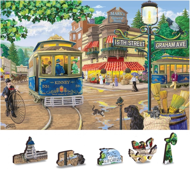 Te premiumowe drewniane puzzle przedstawiają żywą scenę z retro tramwajem i uliczką pełną detali z epoki. Dzięki laserowo wycinanym elementom z gładkimi krawędziami układanie to przyjemność i wyzwanie w jednym. Dwustronne wykonanie pozwala układać od frontu według motywu lub od spodu według powtarzalnego wzoru.