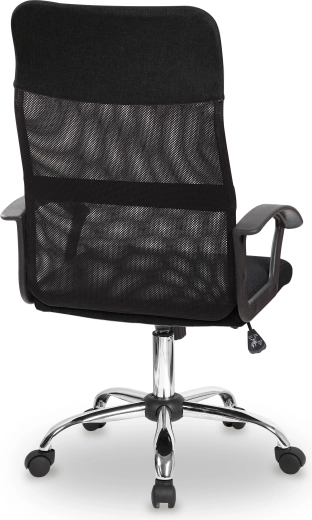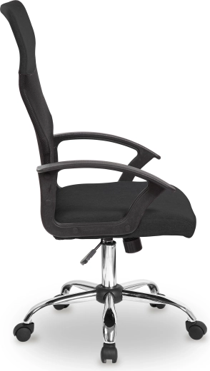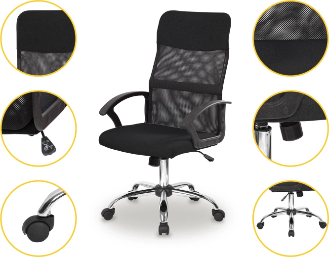 Krzesło wyposażono w pięć gumowych kółek, które umożliwiają łatwe i bezpieczne przemieszczanie po dowolnej powierzchni bez ryzyka uszkodzeń. Jego nowoczesny design i elegancka czarna kolorystyka sprawiają, że idealnie pasuje do każdego środowiska biurowego.