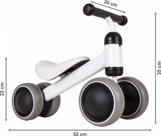 Odpowiedni dla dzieci w wieku od 18 do 36 miesięcy, o maksymalnym obciążeniu do 20 kg. Wymiary: 52x35x22 cm.