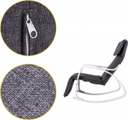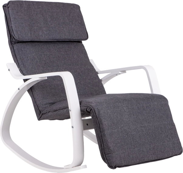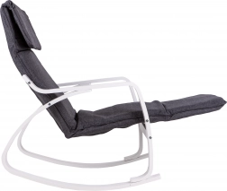 Ciesz się relaksem z nowoczesnym fotelem bujanym od ModernHome, który łączy ergonomiczny design, trwałą konstrukcję i komfortowe siedzenie z miękkim zagłówkiem.