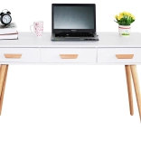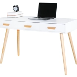 Ciesz się stylem i funkcjonalnością z nowoczesnym biurkiem ModernHome. Wyróżnia się trzema pojemnymi szufladami oraz stabilnymi nogami z drewna sosnowego, co czyni je idealnym wyborem do biura, salonu lub sypialni.