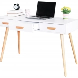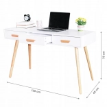 Ciesz się nowoczesnym designem tego biurka, które łączy biały blat z elementami z drewna sosnowego. Ciekawa forma i staranne wykonanie gwarantują atrakcyjny wygląd w każdym wnętrzu. Mebel może pełnić funkcję toaletki w sypialni, dobrze zaprojektowanego biurka w biurze lub konsoli w salonie.