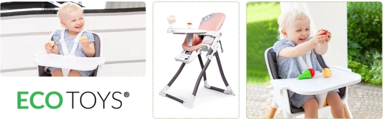 Podwyższone krawędzie tacki sprawiają, że nic nie rozleje się na podłogę. Dodatkowo taca składa się z dwóch części, z których pierwsza służy do jedzenia, a druga do zabawy.