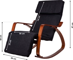 Fotel bujany marki ModernHome oferuje doskonałą kombinację komfortu i stylu. Dzięki nowoczesnemu designowi i możliwości delikatnego bujania, jest idealny do relaksu i odprężenia po ciężkim dniu. Wyściełane oparcie wspiera zmęczony kręgosłup i umożliwia pełnowartościowy odpoczynek.