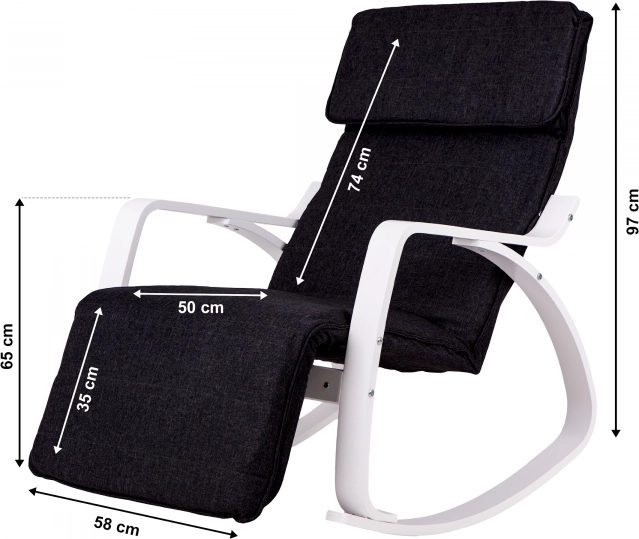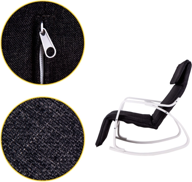 Ciesz się chwilami relaksu z krzesłem bujanym od ModernHome, które dzięki możliwości delikatnego kołysania skutecznie łagodzi stres. Komfortowe oparcie i podwójna poduszka na głowę dodatkowo zapewniają wsparcie dla twojego zmęczonego kręgosłupa i mięśni szyi.