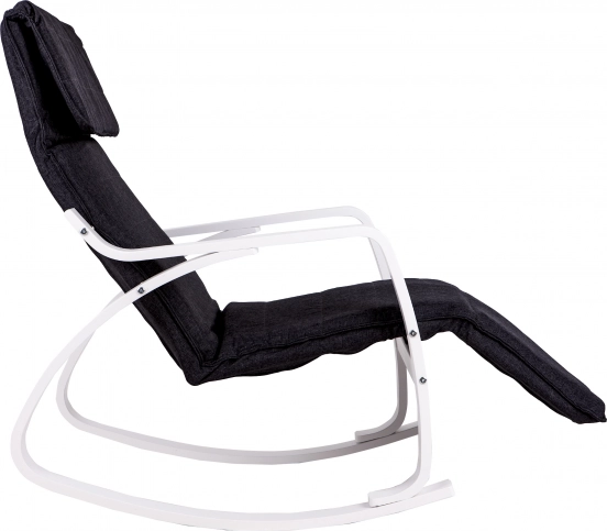 Krzesło bujane umożliwia 5-stopniową regulację podnóżka, co znacznie zwiększa komfort i możliwości relaksu.