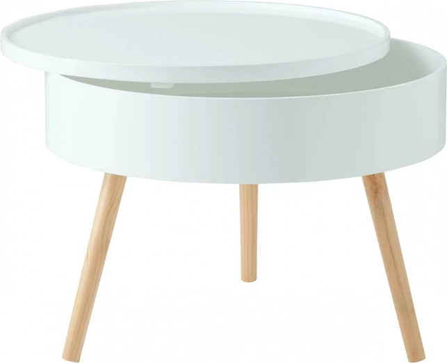Stolik jest idealny do sypialni na lampkę, budzik lub książki. Górna część jest zdejmowana i może służyć jako taca.