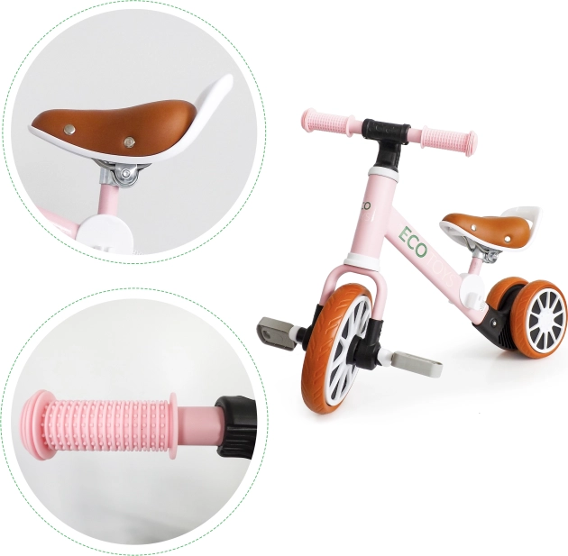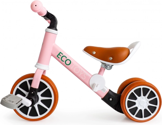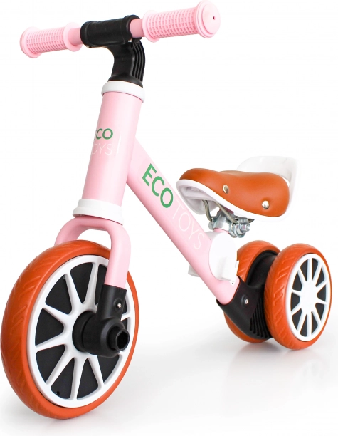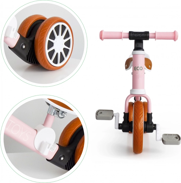 Różowy jeździk ECO TOYS został zaprojektowany dla maluchów uczących się równowagi i koordynacji. Dzięki odpinanym pedałom i regulowanej wysokości siodełka rośnie razem z dzieckiem. Trójkołowa konstrukcja zapewnia stabilność, dzięki czemu dziecko może bezpiecznie odkrywać świat wokół siebie.
