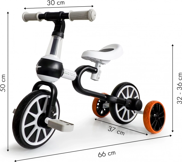 Biegówka i rowerek 4w1 ECOTOYS zostały zaprojektowane z myślą o potrzebach najmłodszych. Oferują cztery różne konfiguracje, dzięki czemu sprawdzają się na różnych etapach nauki jazdy. Umożliwiają przejście od biegówki z zamontowanymi bocznymi kółkami aż do standardowego rowerka bez kółek pomocniczych.