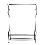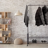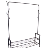 Praktyczny stojak na ubrania i obuwie, idealny do każdej garderoby, sypialni lub przedpokoju. Dzięki wytrzymałym kółkom jest w pełni mobilny i łatwy do przestawiania.