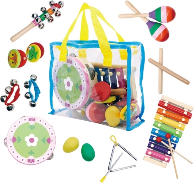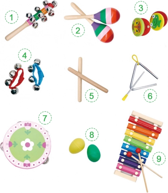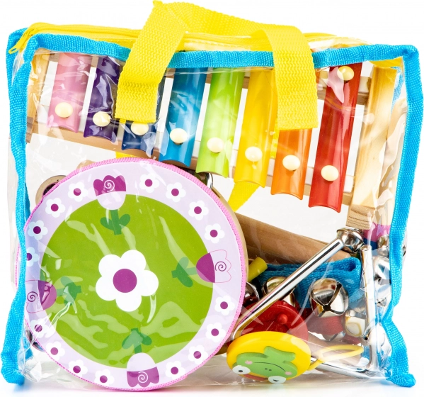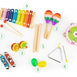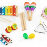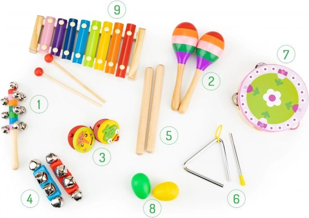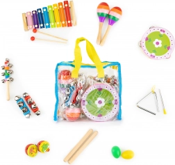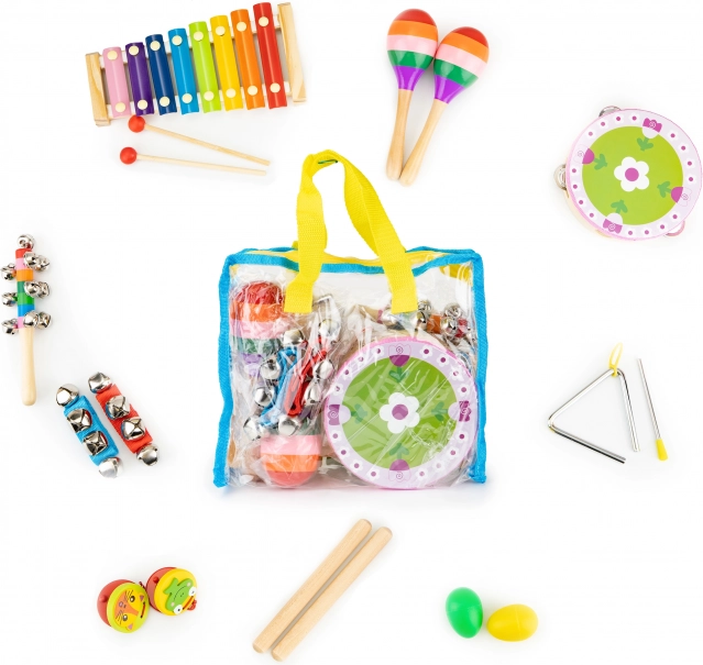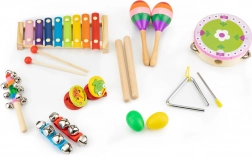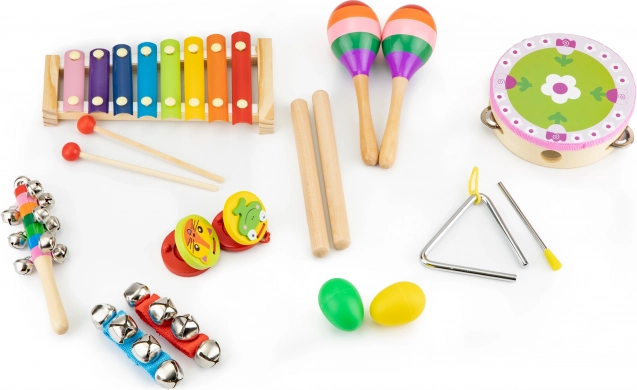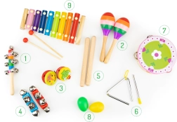 Od marakasów i kastanietów po trójkąt, tamburyn i talerze – różnorodny zestaw pobudza kreatywność i zachęca do wspólnej zabawy całej rodziny.