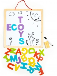 Edukacyjna magnetyczna tablica ECOTOYS to doskonałe narzędzie do rozwoju dzieci. Zapewnia szerokie możliwości kreatywnej zabawy dzięki użyciu kred, markerów lub magnetycznych literek. Tablica jest odpowiednia dla dzieci powyżej 3 lat, a jej bezpieczna, drewniana konstrukcja umożliwia długotrwałą i bezpieczną zabawę.