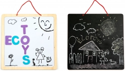 - 2w1 dwustronna tablica: jedna strona do kred, druga do markerów lub magnetycznych literek.
