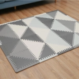 Matowe trójkątne elementy z "ząbkami" pozwalają na dowolną zmianę kształtu maty. Grubość 0,9 cm zapewnia doskonałą ochronę przy upadku oraz przyjemną miękkość w użyciu.