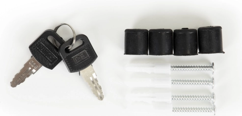 Razem ze skrzynką otrzymasz zestaw montażowy – 4 kołki i podkładki dystansowe, dzięki czemu możesz rozpocząć instalację zaraz po rozpakowaniu. W zestawie znajdują się dwa klucze do otwierania skrzynki.