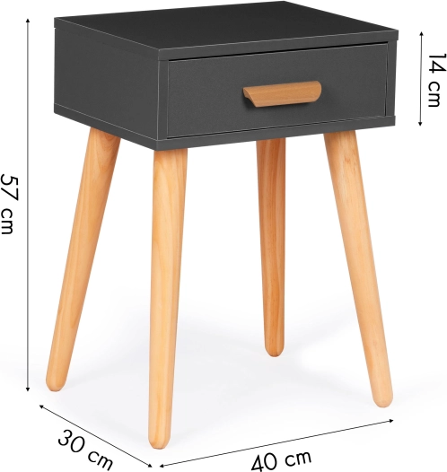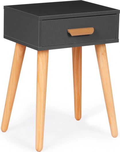 Elegancja w minimalistycznym wydaniu. Ten uniwersalny stolik sprawdzi się jako stolik nocny przy łóżku oraz jako stolik pomocniczy/kawowy przy kanapie. Praktyczna szuflada z drewnianym uchwytem pomieści wszystkie niezbędne drobiazgi, a kompaktowe wymiary oszczędzają miejsce i zachowują czysty wygląd wnętrza.