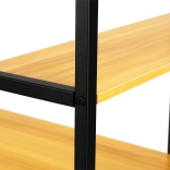 Drewniane biurko komputerowe z zintegrowanymi loftowymi półkami łączy naturalne wykończenie z czarną metalową ramą, oferując solidną przestrzeń roboczą z nowoczesnym akcentem.