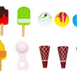 - Wózek, 5 lodów na patyku, 3 rożki, 3 gałki lodów, łyżeczka