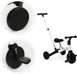 Koła wykonane ze specjalnego materiału EVA nie zostawiają śladów i nadają się do zabawy w domu i na dworze. Pedały można łatwo zdjąć, aby przekształcić je na rower równoważny.