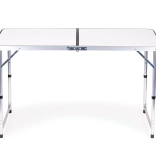 Ciesz się wygodnym biesiadowaniem na łonie natury. Przestronny blat w matowej bieli jest łatwy w utrzymaniu i wygodnie pomieści do 4 osób. Regulowana wysokość 61,5–69,5 cm zapewnia komfort przy porannej kawie i wspólnym obiedzie. Zamek bezpieczeństwa chroni przed niechcianym złożeniem, a stabilna metalowa konstrukcja daje pewność w terenie.