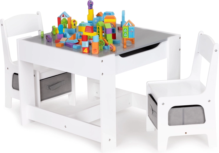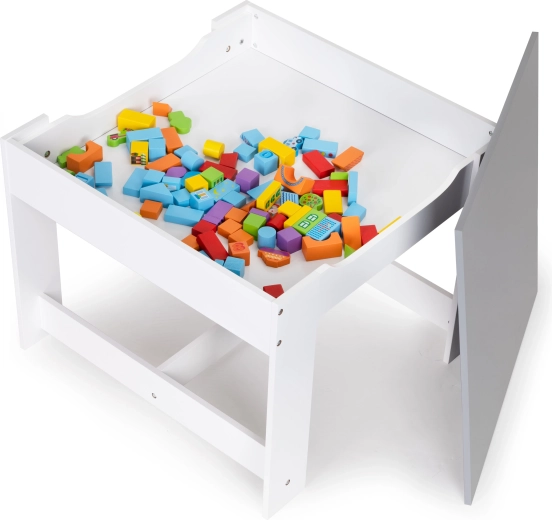 Stolik świetnie sprawdzi się jako miejsce, gdzie mali artyści będą tworzyć dzieła sztuki, budować z klocków i robić wiele innych kreatywnych rzeczy. Po zabawie wszystkie akcesoria można schować pod blat stolika lub do koszyków pod siedziskiem, dzięki czemu zawsze będą pod ręką i gotowe do użycia.