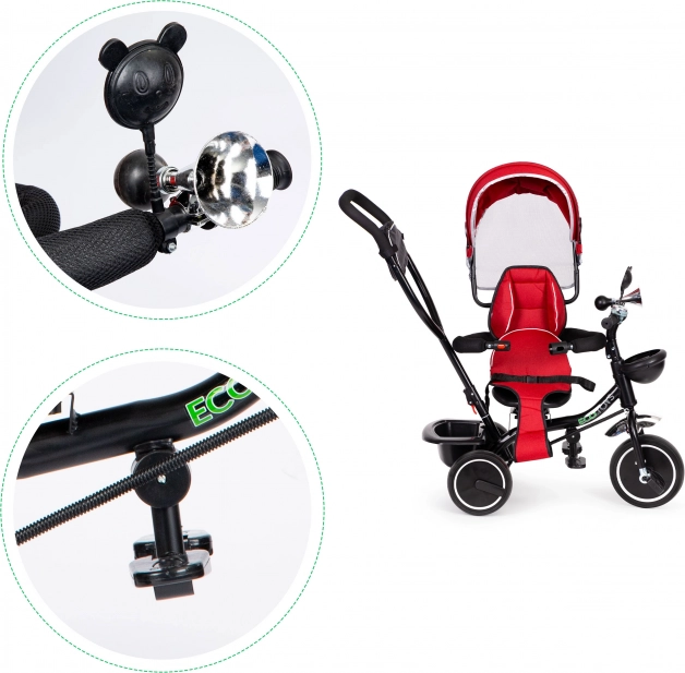 ECOTOYS oferuje solidny i stylowy trójkołowiec dla dzieci od 12 miesięcy. Trójkołowiec jest wyposażony w: