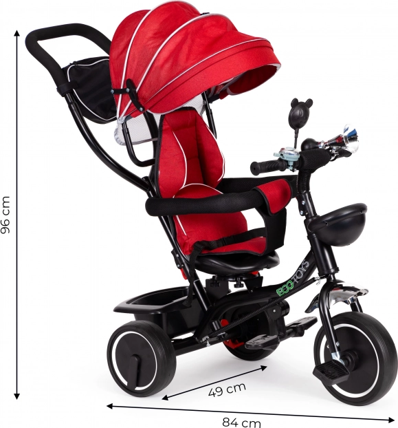 Dziecięcy trójkołowiec ECOTOYS jest idealnym rozwiązaniem dla rodziców, którzy szukają bezpiecznej i zabawnej opcji dla swoich dzieci. 360° obrotowe siedzenie, składany daszek oraz wygodna rączka pozwalają, by ten trójkołowiec rósł razem z twoim dzieckiem.