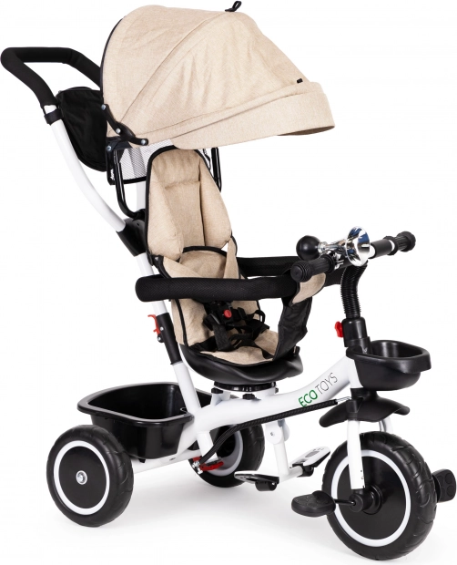 Trójkołowiec marki ECOTOYS łączy wiele praktycznych rozwiązań, które zapewniają Twojemu dziecku bezpieczną zabawę. Miękkie oparcie umożliwia wygodne siedzenie, a pasy bezpieczeństwa wraz z barierkami chronią dziecko przed wypadnięciem. Składana budka osłania przed deszczem i słońcem, natomiast specjalnie wyprofilowana rama i obrotowe siedzisko ułatwiają wsiadanie najmłodszym.