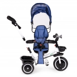 Świetną cechą tego trójkołowca jest jego stabilność i wytrzymałość dzięki oponom z materiału EVA. Tylne koła wyposażono w hamulec postojowy dla większego bezpieczeństwa. Rodzice mogą wygodnie kontrolować jazdę dzięki rączce prowadzącej.