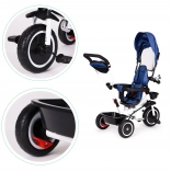 Trójkołowiec posiada wytrzymałe koła EVA, odporne na przebicie, które zapewniają płynną jazdę nawet po nierównym terenie.