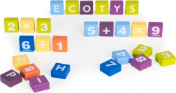 Dzięki nadrukowanym literom, cyfrom i znakom dzieci w naturalny sposób przyswajają podstawy alfabetu i matematyki podczas budowania swoich pierwszych konstrukcji.