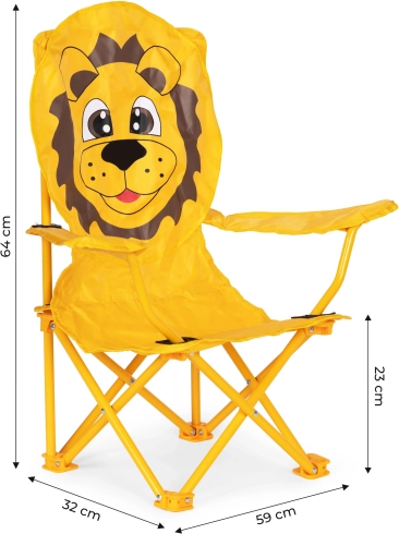 Krzesełko zostało wykonane z myślą o trwałości i bezpieczeństwie dzieci. Jego rama powstała z wytrzymałych stalowych rurek, co zapewnia mu odpowiednią stabilność i odporność. Pomarańczowe poszycie z grafiką lwa przyciąga wzrok i zainteresuje każdego malucha. Do wykonania poszycia użyto poliestru (600D), dodatkowo powlekanego poliuretanem, który jest odporny na deszcz i słońce. Dzięki temu krzesełko posłuży przez wiele sezonów i szybko stanie się ulubionym miejscem do siedzenia.