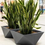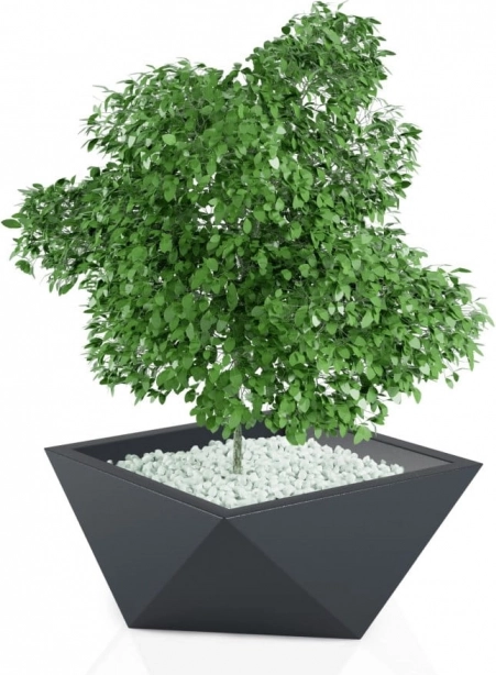 Donica MONUMO Vendetta łączy minimalizm z wyrazistą geometrią, dzięki czemu doskonale prezentuje się w nowoczesnych wnętrzach, na tarasie i w ogrodzie. Jej eleganckie, antracytowe wykończenie podkreśla piękno roślin i dodaje przestrzeni czystego, designerskiego akcentu.