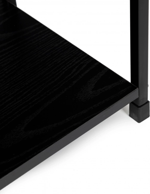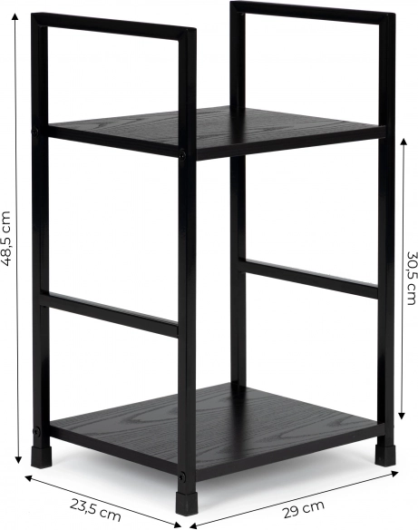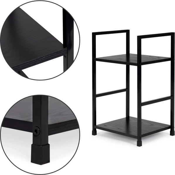Szczegóły techniczne: Półka wykonana jest z płyty MDF pokrytej okleiną imitującą drewno o wymiarach 23,5 x 29 cm. Rama półki to malowany proszkowo metal, a nóżki wyposażone są w specjalne podkładki chroniące podłogę. Odległość między półkami wynosi 30,5 cm.