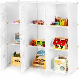 Dzięki solidnym łącznikom ABS złożysz szafkę w mgnieniu oka. Każdy z 9 modułów udźwignie do 3 kg – idealnie na książki, zabawki czy klocki.