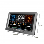 Inteligentna stacja meteorologiczna METEO SP101 z łącznością Wi‑Fi umożliwia śledzenie pogody z dowolnego miejsca przez aplikację Smart Life (TUYA). Mierzy temperaturę wewnętrzną i zewnętrzną oraz wilgotność, posiada pamięć wartości min./max., 5‑dniową prognozę pogody z internetu, wskaźnik UV, budzik z drzemką i można ją ustawić lub zawiesić na ścianie.