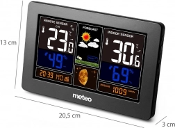 Ta stacja jest wyposażona w funkcje bezprzewodowego pomiaru temperatury wewnątrz i na zewnątrz oraz wilgotności. Umożliwia połączenie z aplikacją WiFi, dzięki czemu możesz sprawdzać dane za pomocą smartfona z dowolnego miejsca na świecie z dostępem do Internetu. Posiada także zegar z automatyczną synchronizacją czasu oraz barometr.