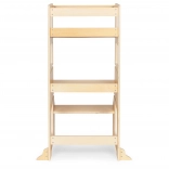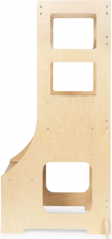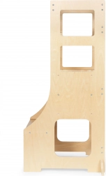 Konstrukcja wykonana jest z odpowiednio grubej sklejki, która gwarantuje bezpieczeństwo i trwałość, dzięki czemu pomocnik posłuży przez długi czas. Zastosowanie sklejki w naturalnym kolorze nadaje pomocnikowi niepowtarzalny, estetyczny wygląd i sprawia, że pasuje do każdego rodzaju kuchni.