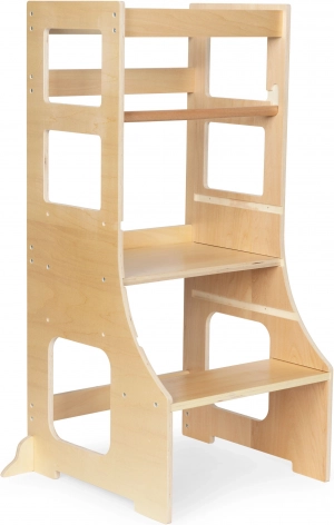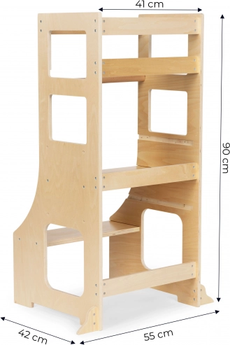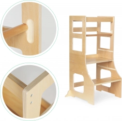 Regulowana wysokość: Wyposażony w dwa stopnie, które można ustawić na różnych wysokościach, co zapewnia idealne dopasowanie dla dzieci w różnym wieku. Dzięki temu Twoje dziecko zawsze będzie miało łatwy dostęp do blatu, także gdy podrośnie.