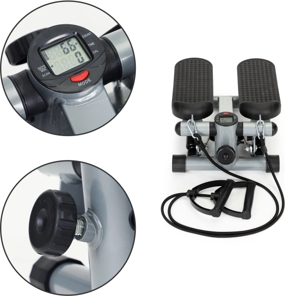Stwórz efektywny trening cardio i siłowy w domu. Ten mini stepper łączy płynny ruch z hydraulicznym oporem, wygodne antypoślizgowe platformy oraz gumy oporowe z miękkimi uchwytami, aby aktywować górne i dolne partie ciała. Zintegrowany wyświetlacz czytelnie śledzi czas, kroki, kroki na minutę, kalorie i tryb SCAN.