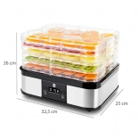 Dzięki przezroczystej pokrywie możesz łatwo obserwować cały proces suszenia. Suszarka jest prosta w obsłudze i czyszczeniu, co czyni ją praktycznym pomocnikiem w każdej kuchni.