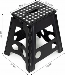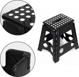 Bezpieczeństwo jest na pierwszym miejscu - dzięki antypoślizgowym nogom i gumowym elementom na platformie nie musisz obawiać się poślizgu. Składany design umożliwia łatwe przechowywanie i przenoszenie, co oszczędza miejsce i zapewnia komfortową manipulację.