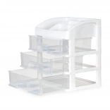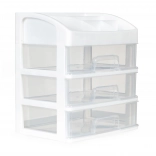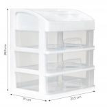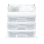 Utrzymuj swoje kosmetyki zorganizowane i przejrzyste dzięki naszemu eleganckiemu białemu organizerowi z tworzywa. Jego praktyczna konstrukcja oferuje kilka przegródek i trzy przezroczyste szuflady, w których z łatwością przechowasz wszelkie drobiazgi.
