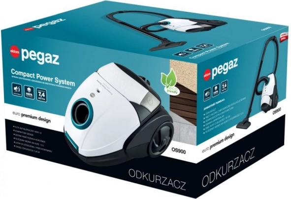 Kompaktowy odkurzacz workowy ELDOM Pegaz oferuje moc 700 W, filtr HEPA H13 dla alergików oraz zasięg pracy 7,4 m. Jest mały i łatwy do przechowywania, posiada automatyczne zwijanie przewodu, możliwość parkowania pionowo i poziomo oraz obsługuje materiałowy worek 1,5 l i worki jednorazowe.