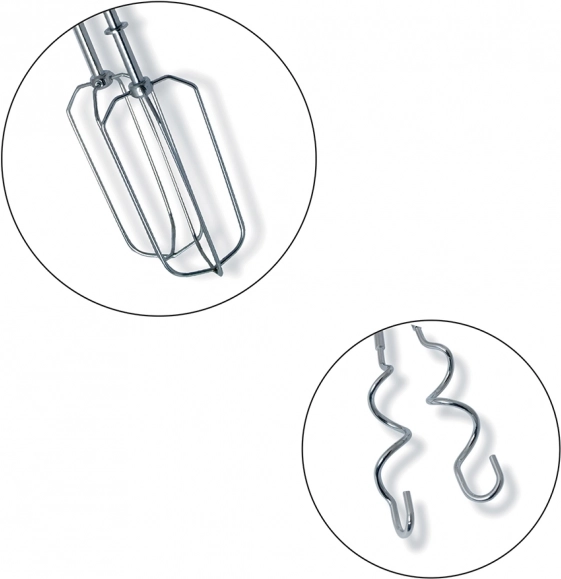 Mikser umożliwia montaż wymiennych końcówek do mieszania i ubijania. Bez problemu poradzi sobie z przygotowaniem cięższych ciast, takich jak świąteczny sernik czy wielkanocne ciasto drożdżowe.