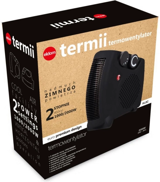Grzejnik wentylatorowy Eldom Termii oferuje elastyczność i wygodę dzięki możliwości wyboru początkowej temperatury powietrza. Wyposażony jest w lampkę kontrolną dla łatwej kontroli oraz wygodne pokrętła do regulacji temperatury powietrza – zarówno ciepłego, jak i zimnego.
