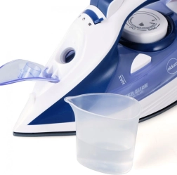 Żelazko jest wyposażone w zaawansowane funkcje, takie jak regulacja temperatury i pary, spryskiwacz oraz termostat dla precyzyjnych ustawień. System anti-drip zapobiega wyciekaniu wody, a funkcja samoczyszczenia zapewnia długą żywotność urządzenia.