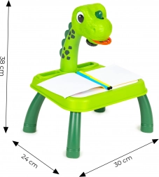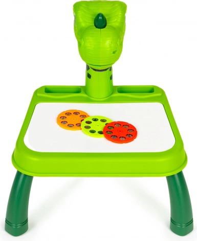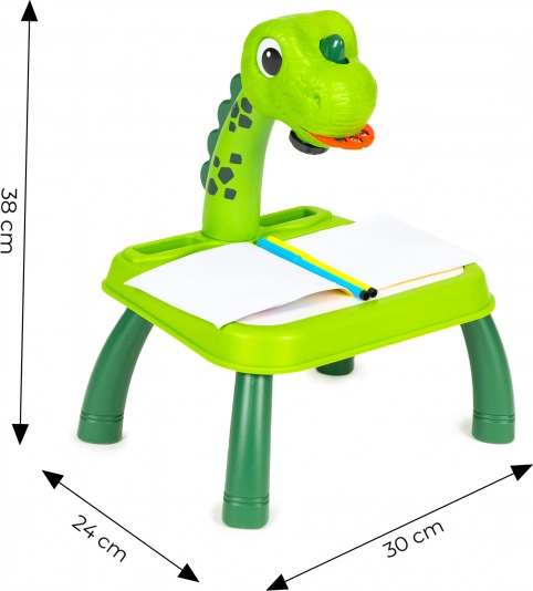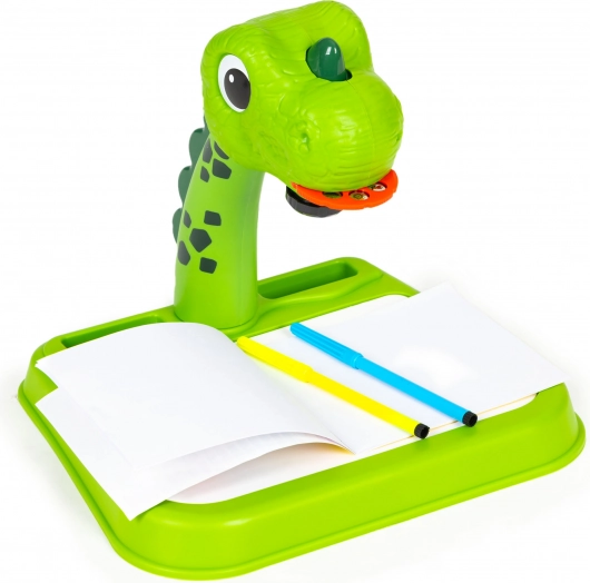 Odkryj magię tworzenia z dziecięcym stolikiem projekcyjnym z motywem dinozaura. Wystarczy włożyć wybrany dysk (zwierzęta, pojazdy, owoce), wybrać motyw i wyświetlić go na powierzchni roboczej lub papierze – dzieci mogą wygodnie odrysowywać i uczyć się rysować nowe kształty. Zmiana obrazka jest prosta: wystarczy obrócić pokrętło i od razu gotowy jest kolejny motyw.